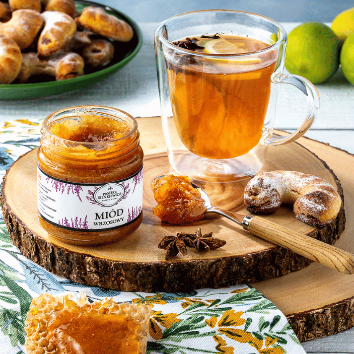 • Krótki, czysty skład — 100% miodu wrzosowego, bez dodatku cukru i konserwantów.