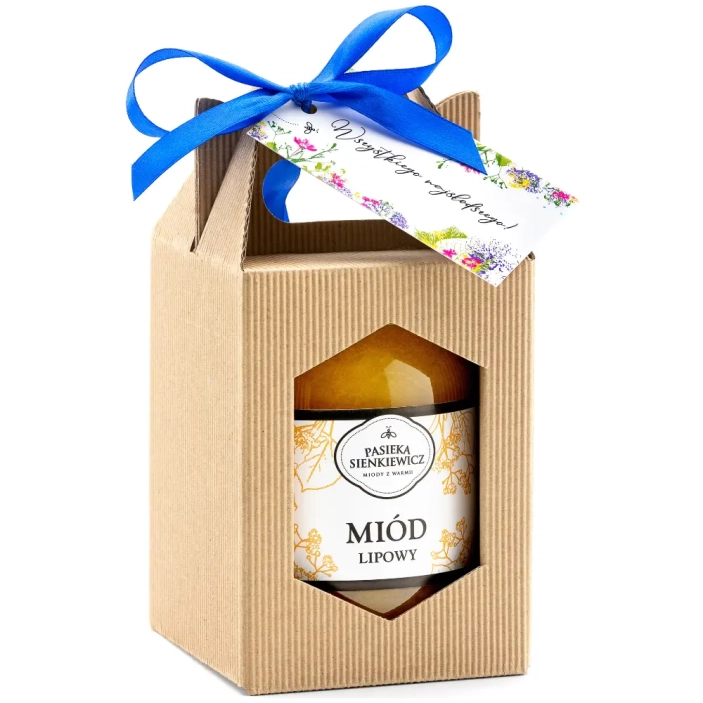 Miód tradycyjny w elegancki, eko opakowaniu to upominek pełen naturalnej słodyczy, który ucieszy każdego obdarowanego.
